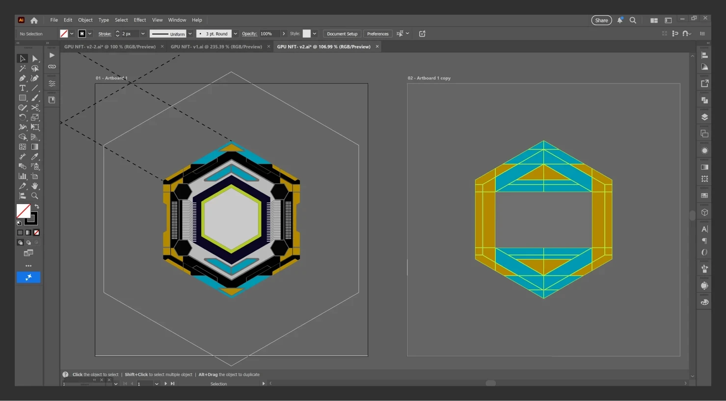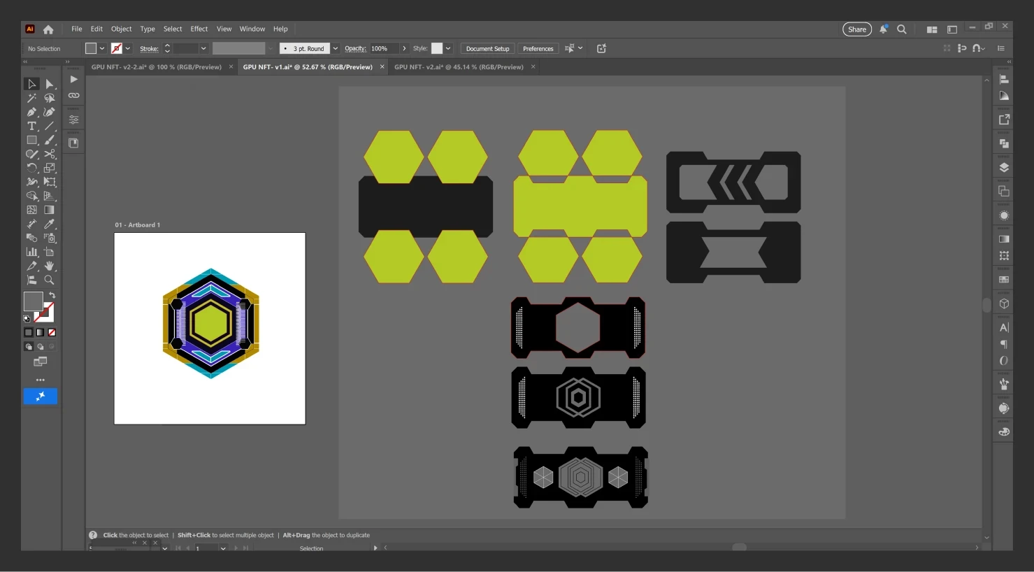 Ideating in 2D allowed for rapid iteration and technical precision before moving into production. By exporting vector paths from Illustrator to Cinema 4D, I established a clean foundation for high-fidelity modeling and seamless refinement of the GPU asset.