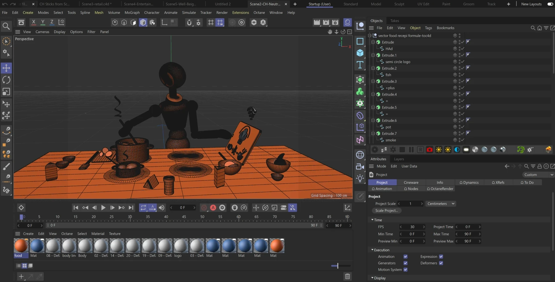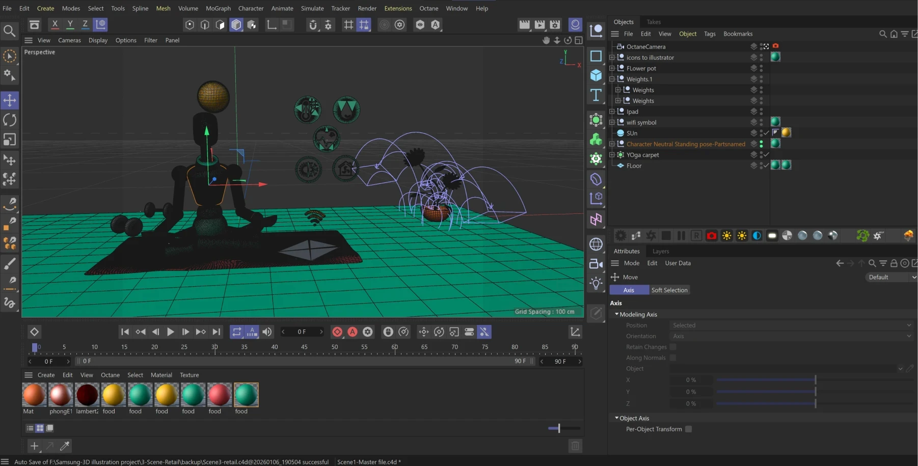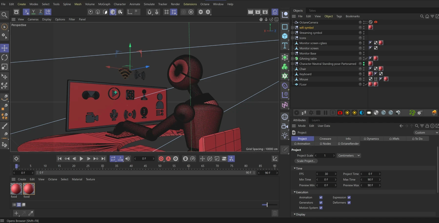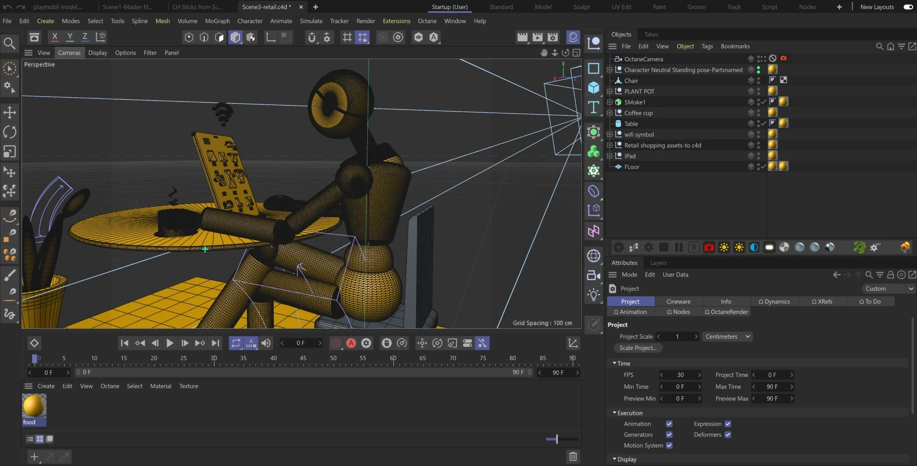 Every element was designed in Cinema 4D, from the characters to the architecture. This wireframe stage ensures the composition is purposeful before exporting to Adobe Dimension for final staging and rendering.